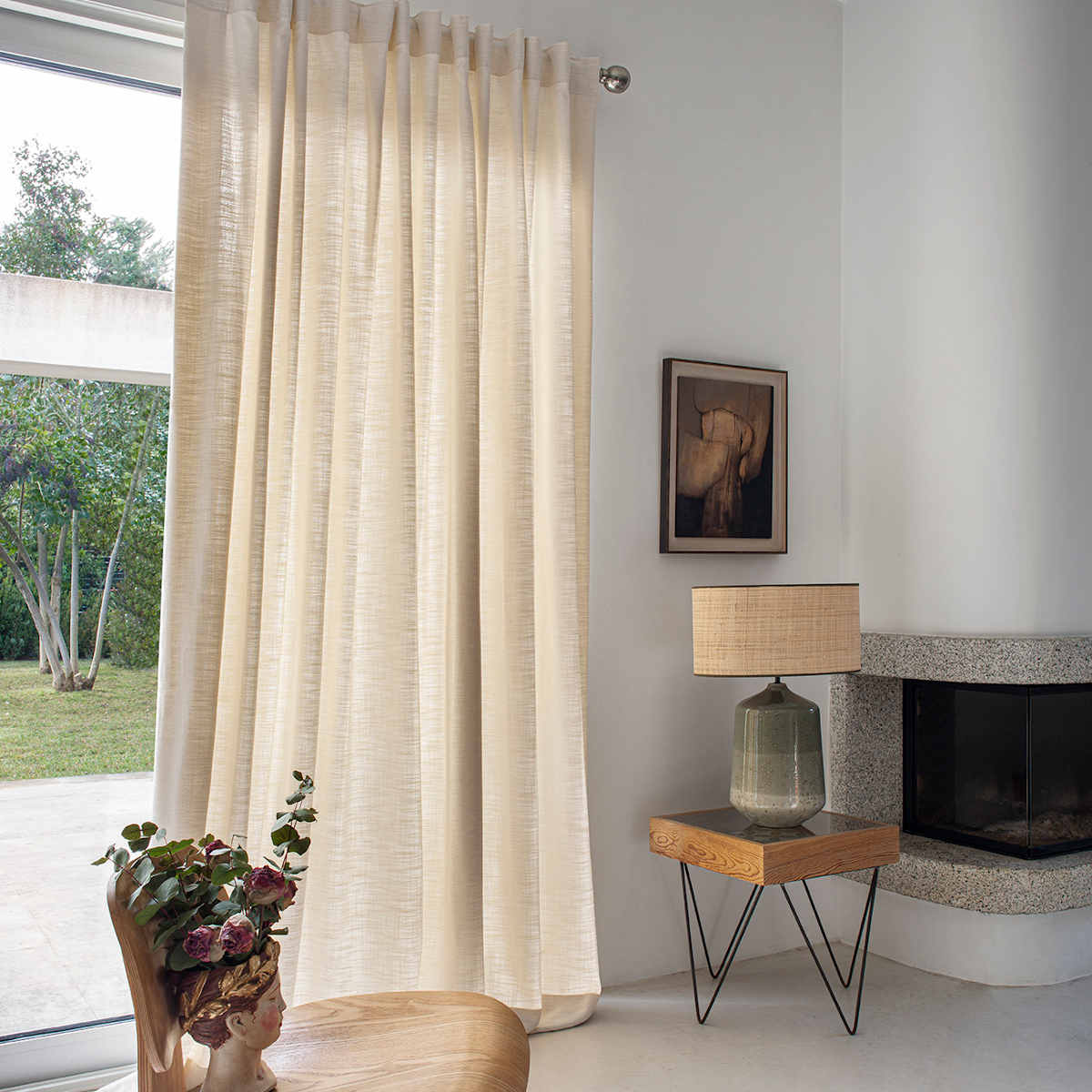 [description_large] => Este visillo de poliéster de doble ancho ofrece una excepcional imitación de las fibras naturales del lino, con un tacto suave y agradable y una caída y fluidez sobresalientes.
